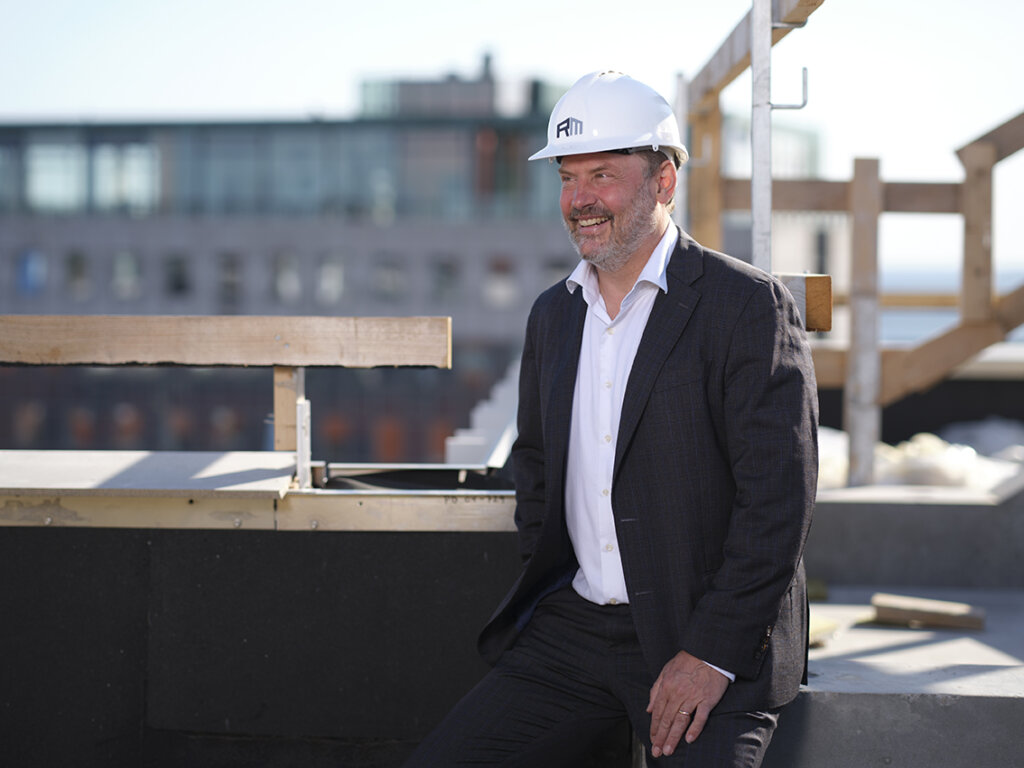 - Bomærket der består af bogstaverne R og M symboliserer en bygning i perspektiv